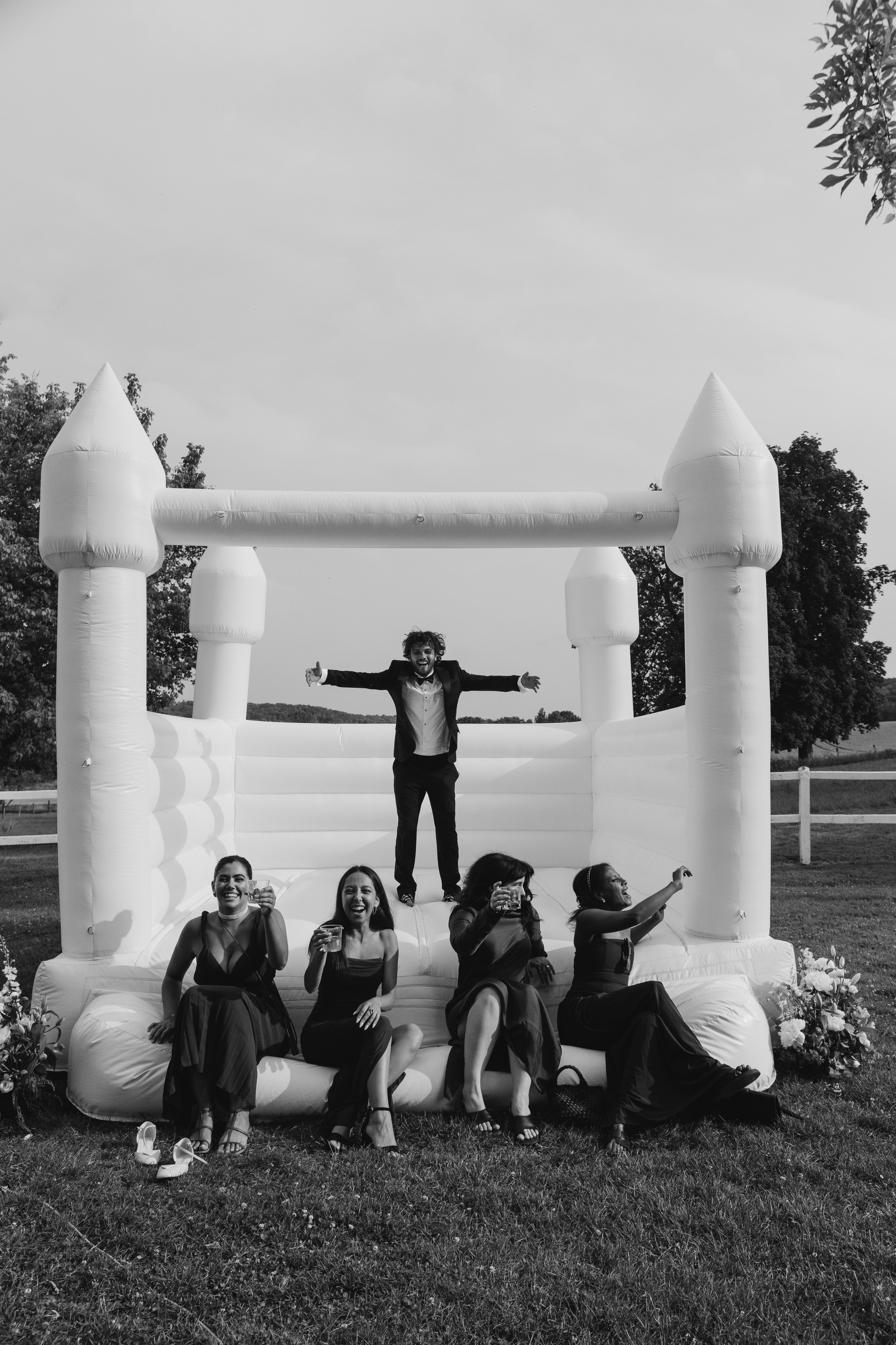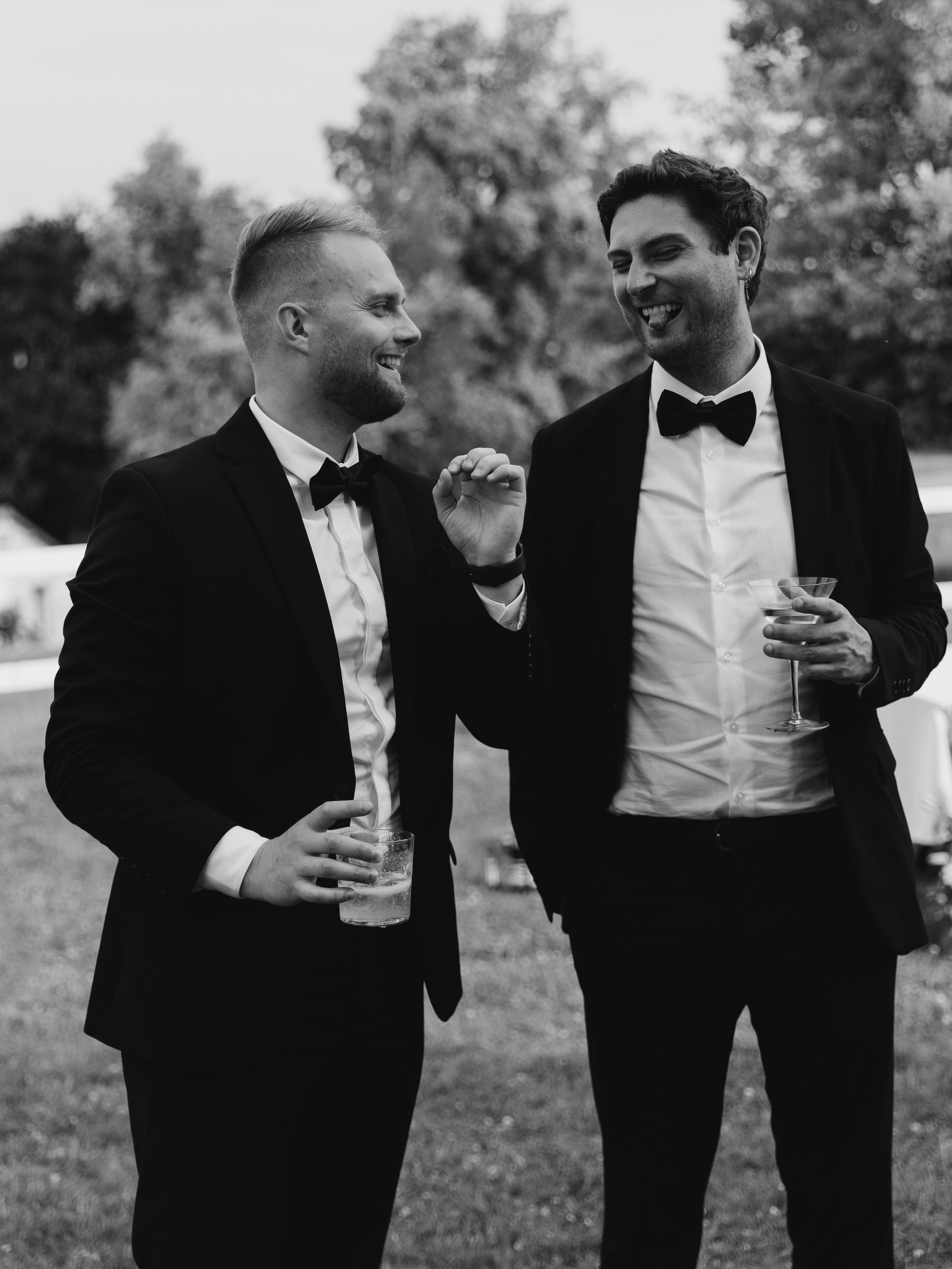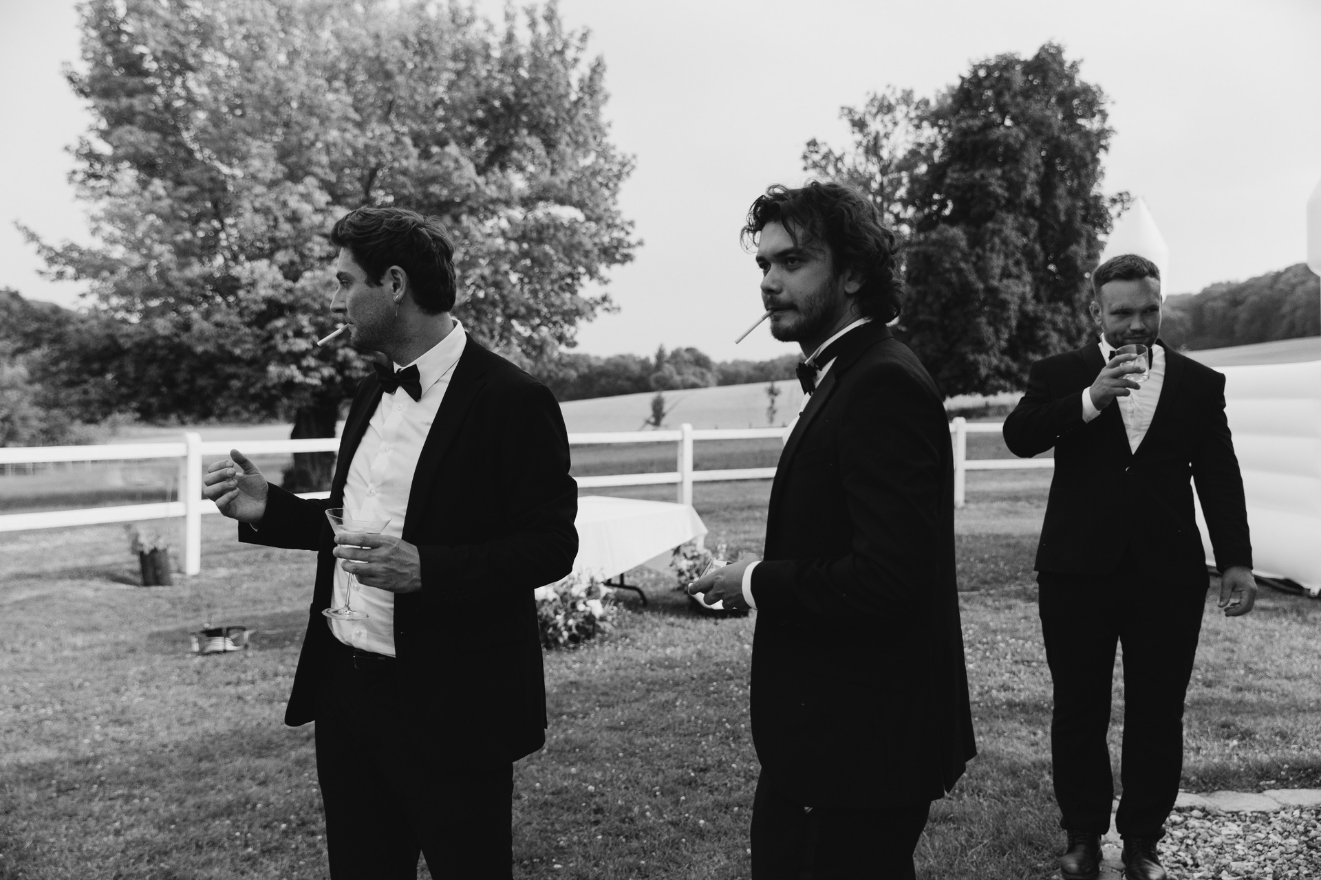 Шампань: клятвы жениха и невесты, переведенные на 4 языка, авторские коктейли от знаменитых барменов и надувной батут на лужайке — праздник Йонаса и Дарьи.